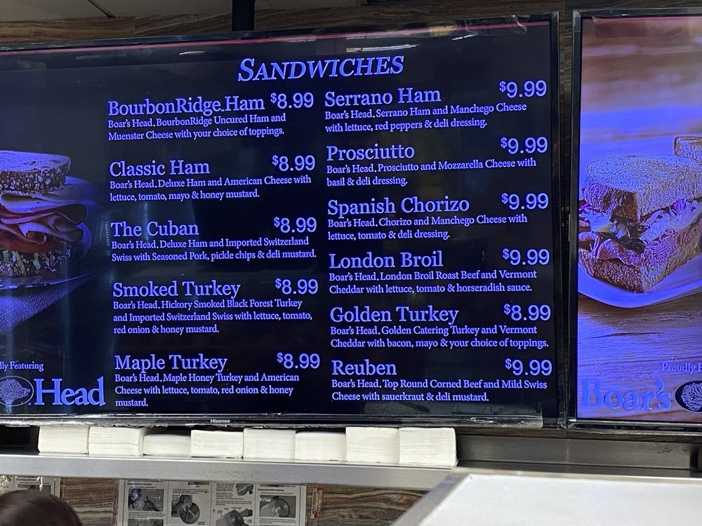 El Cubano.Deluxe ham, seasoned roast pork, gold label Swiss, pickle chips, deli mustard